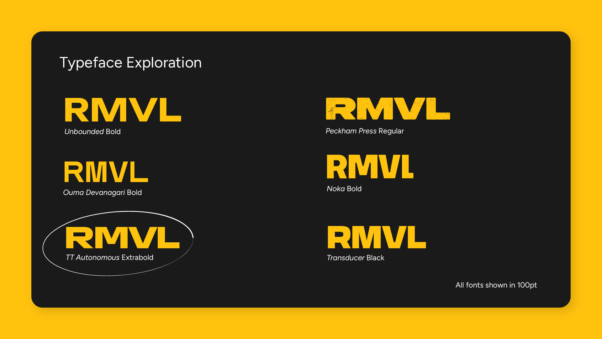 From the outset of this project, I knew that the logo would be a wordmark. RMVL Co. wanted a mark that was highly legible, bold & minimal. These factors guided the ideas that I took to my sketchbook.